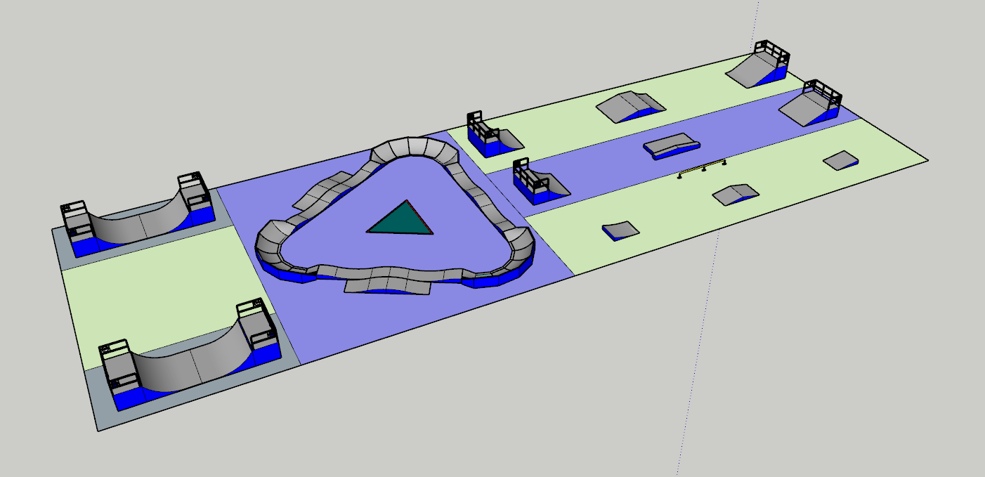 2.規(guī)劃設計:需要考慮道具的組合擺放、安全距離、角度、路線設計和難度系數等因素。安全系數必須符合歐盟標準。例如,對于趣味箱,碾磨軌與扶手箱之間的距離至少為1.5米,碾磨軌的邊角應彎曲至45°角。此外,我們還會收集專業(yè)運動員的建議,這一點非常重要!